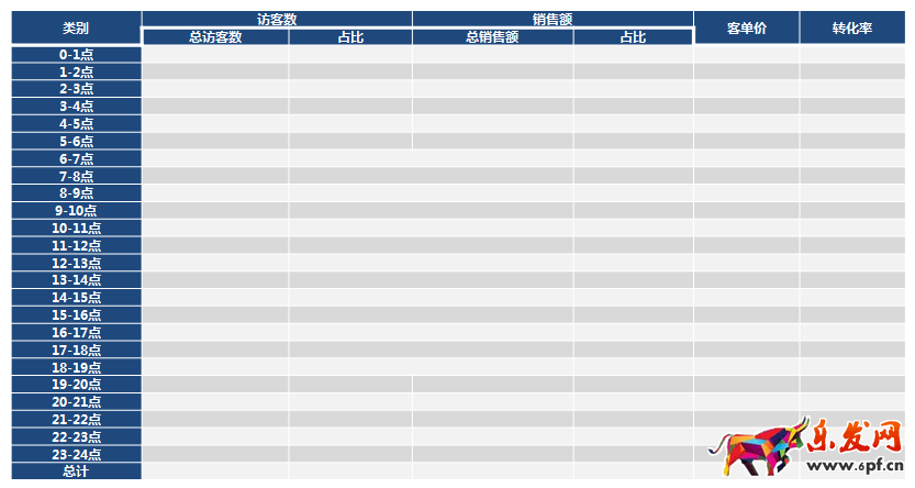 總體的分析完了,那么我們就開始把各個時間段的數據拆分一下,再去看看每個時間段的數據,揣摩每個時間段進來的訪客心里需求,再去給每個時間段的進來的訪客去做針對性的營銷促銷,從而更合理的利用進來的訪客,提高店鋪整體的轉化率和營業額。(ps:數據導出途徑可以通過生E經-按時段分析-導出數據后自主整理)