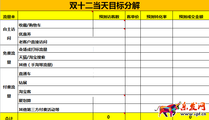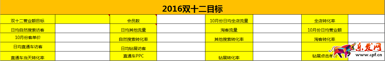 王健林說過,要先定個一個小目標,所以說要做好雙12我們也需要先定一個小目標,比方說一百塊,難道一百塊都不給我?ok,那么制定完目標后,我們要通過什么方式去實現它呢?那么就要回歸銷售額的定律了:銷售額=訪客*轉化率*客單價。結合店鋪10月份數據,然后分解出雙十二當天需要進來多少的訪客,轉化率需要多少,客單價需要多少,才能完成制定的目標,然后在去思考預熱期間通過什么方式去實現分解出來的指標。