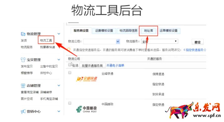 設(shè)置物流工具是發(fā)貨的的基礎(chǔ),并且設(shè)置好物流能增加地域標(biāo)簽,只有設(shè)置好物流工具后臺(tái),我們的產(chǎn)品才能優(yōu)先地推薦到買家的面前。下面我們具體看看如何進(jìn)行地址庫(kù)設(shè)置,首先打開(kāi)物流工具后臺(tái),點(diǎn)擊地址庫(kù),進(jìn)入地址庫(kù)的正確設(shè)置。
