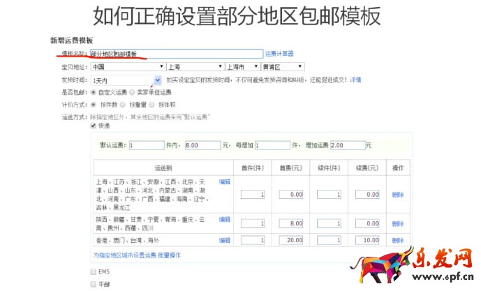 第二種非包郵模板設(shè)置,在設(shè)置非包郵模板時(shí)要注意自定義運(yùn)費(fèi)的設(shè)置。