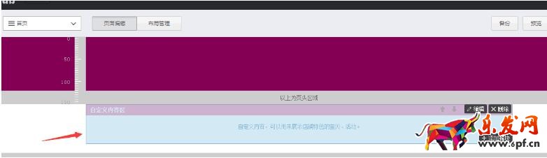 進(jìn)入編輯狀態(tài)。因?yàn)榭蚣苁侵С?50的,所以直接把圖片上傳的話(huà),系統(tǒng)就會(huì)自動(dòng)壓縮成950,而要做1920的就要用到css代碼了。