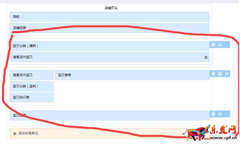 然后,到布局管理里面把淘寶的模板刪掉,自己添加一個(gè)自定義模塊(一個(gè)就行,把圖片全部放進(jìn)去)。
