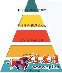 (2)根據(jù)預(yù)估的數(shù)據(jù)進行每月寶貝月銷量的預(yù)測,拆分成潛力款的寶貝月銷售量的目標(biāo),這就是對上新寶貝進行的梯度建設(shè)管理。將要推廣的寶貝進行梯度分類,分為5個層,從頂端往下數(shù)起,分別是小爆款,接近目標(biāo)銷量的潛力款,正在培養(yǎng)的潛力款,萌發(fā)的潛力款,春夏測試的新款,梯度分類之后,預(yù)估每個梯度的寶貝數(shù)量,然后根據(jù)寶貝實際情況進行調(diào)整和補位。例如,3月的目標(biāo)銷量層要達到8個,實行的時候已經(jīng)達到7個了,差一個達到目標(biāo),那就到下一層的潛力款中選擇最具有潛力的寶貝進行推廣力度的調(diào)整,從而達到補位的效果。這個梯度建設(shè)計劃可以很清晰的知道每個月的目標(biāo)和需要落實的具體操作。