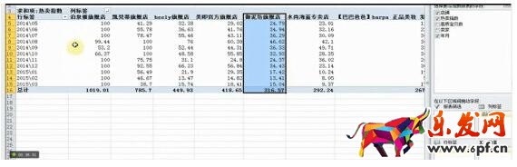 然后看看下圖,這是上海售賣面膜的店鋪一年內熱賣指數,是指這一年內這些店鋪熱賣的時間,根據這張表,我會建議大家選擇第一個旗艦店,因為他只有三個月份熱賣指數不是100,而且這三個月不一定是他不能熱賣,可能是因為貨源或者在籌備十一月份的銷售。所以這個店鋪很穩定可以作為目標或學習對象。