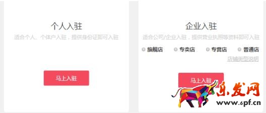 用戶成功登錄后,進入入駐選擇頁面,商家根據自身需要入駐的類型,選擇不同的入口。不同入口入駐,需要上傳的資質不一樣。