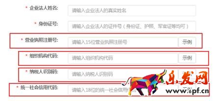 G、營業執照注冊號、組織機構代碼、納稅人識別碼、統一社會信用代碼的填寫,必須與您上傳的相關證件一致;三證合一的營業執照,請全部填寫統一社會信用代碼,非三證合一的營業執照請在統一社會信用代碼處填寫營業執照注冊號,請根據您的營業執照類型依次填寫。填寫代碼時,可參照示例中給出的說明。
