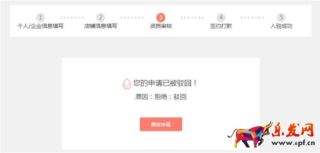 信息填寫完成,點擊提交,進入待審核階段,您的申請將會在 48 小時內處理完畢,審核結果將通過手機短信告知。如果被駁回,登錄拼多多招商平臺,可查看駁回原因,并重新修改后提交;審核通過的,可直接進入下一個環節。