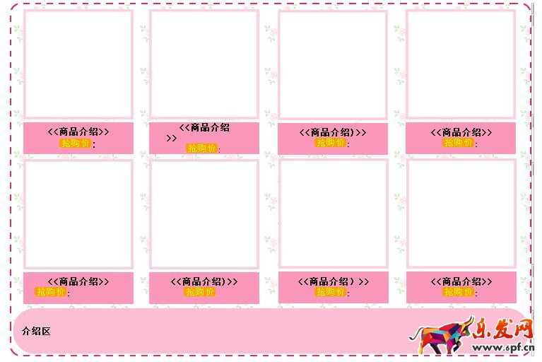 area id="code2" cols="110" style="width:100%;height:350px;"><table height="500" cellspacing="0" cellpadding="0" width="738" align="center" border="0"> <tbody> <tr> <td><img height="15" src="http://img.sanjiaoli.com/cuxiao/028/a_r1_c1.gif" _fcksavedurl="http://img.sanjiaoli.com/cuxiao/028/a_r1_c1.gif" width="738" border="0" /></td> <td><img height="15" src=http://m.17872.cn/skin/qyskindir/image/nopic.gif _fcksavedurl=http://m.17872.cn/skin/qyskindir/image/nopic.gif width="1" border="0" /></td> </tr> <tr> <td valign="top" align="left" width="738" background="http://img.sanjiaoli.com/cuxiao/028/a_r2_c1.gif" height="143"><table cellspacing="0" cellpadding="0" width="100%" border="0"> <tbody> <tr> <td width="26"> </td> <td width="143" height="143"> </td> <td width="35" height="143"> </td> <td width="143"> </td> <td width="38"></td> <td width="143"> </td> <td width="38"> </td> <td width="144"> </td> <td width="28"> </td> </tr> </tbody> </table></td> <td><img height="143" src=http://m.17872.cn/skin/qyskindir/image/nopic.gif _fcksavedurl=http://m.17872.cn/skin/qyskindir/image/nopic.gif width="1" border="0" /></td> </tr> <tr> <td valign="center" align="left" width="738" background="http://img.sanjiaoli.com/cuxiao/028/a_r3_c1.gif" height="68"><table cellspacing="0" cellpadding="0" width="100%" border="0"> <tbody> <tr> <td valign="top" align="left" height="45"><table cellspacing="0" cellpadding="0" width="100%" border="0"> <tbody> <tr style="FONT-SIZE: 10pt"> <td width="21"> </td> <td valign="center" align="left" width="152"><div style="FONT-SIZE: 12pt" align="center"><strong style="FONT-SIZE: 10pt"><<商品介紹>><br /> </strong><img src="http://img.sanjiaoli.com/cuxiao/028/ac3f41e9255970412083e68a23e61365.gif" />:</div></td> <td width="27"> </td> <td width="151" height="45"><div style="FONT-SIZE: 10pt" align="center"><strong><<商品介紹>> </strong><img src="http://img.sanjiaoli.com/cuxiao/028/ac3f41e9255970412083e68a23e61365.gif" />:</div></td> <td width="31"> </td> <td width="151"><div style="FONT-SIZE: 10pt" align="center"><strong style="FONT-SIZE: 10pt"><<商品介紹)>><br /> <img src="http://img.sanjiaoli.com/cuxiao/028/ac3f41e9255970412083e68a23e61365.gif" />:</strong></div></td> <td width="30"> </td> <td width="152"><div align="center"><strong><<商品介紹>><br /> <img src="http://img.sanjiaoli.com/cuxiao/028/ac3f41e9255970412083e68a23e61365.gif" />:</strong></div></td> <td width="23"> </td> </tr> </tbody> </table></td> </tr> </tbody> </table></td> <td><img height="68" src=http://m.17872.cn/skin/qyskindir/image/nopic.gif _fcksavedurl=http://m.17872.cn/skin/qyskindir/image/nopic.gif width="1" border="0" /></td> </tr> <tr> <td valign="top" align="left" width="738" background="http://img.sanjiaoli.com/cuxiao/028/a_r4_c1.gif" height="144"><table cellspacing="0" cellpadding="0" width="100%" border="0"> <tbody> <tr> <td width="26"> </td> <td width="143" height="144"> </td> <td width="35" height="144"> </td> <td width="143"> </td> <td width="38"> </td> <td width="145"> </td> <td width="36"> </td> <td width="144"> </td> <td width="28"> </td> </tr> </tbody> </table></td> <td><img height="144" src=http://m.17872.cn/skin/qyskindir/image/nopic.gif _fcksavedurl=http://m.17872.cn/skin/qyskindir/image/nopic.gif width="1" border="0" /></td> </tr> <tr> <td valign="center" align="left" width="738" background="http://img.sanjiaoli.com/cuxiao/028/a_r5_c1.gif" height="65"><table cellspacing="0" cellpadding="0" width="100%" border="0"> <tbody> <tr> <td width="21"> </td> <td valign="center" align="left" width="152"><div style="FONT-SIZE: 10pt" align="center"><strong><<商品介紹>><br /> <img src="http://img.sanjiaoli.com/cuxiao/028/ac3f41e9255970412083e68a23e61365.gif" />: </strong></div></td> <td width="27"> </td> <td valign="center" align="left" width="151" height="45"><div style="FONT-SIZE: 10pt" align="center"><strong><<商品介紹)>><br /> <img src="http://img.sanjiaoli.com/cuxiao/028/ac3f41e9255970412083e68a23e61365.gif" /> </strong></div></td> <td width="31"> </td> <td width="152"><div style="FONT-SIZE: 10pt" align="center"><strong><<商品介紹)>><br /> <img src="http://img.sanjiaoli.com/cuxiao/028/ac3f41e9255970412083e68a23e61365.gif" />: </strong></div></td> <td width="29"> </td> <td width="152"><div style="FONT-SIZE: 10pt" align="center"><strong><<商品介紹>><br /> <img src="http://img.sanjiaoli.com/cuxiao/028/ac3f41e9255970412083e68a23e61365.gif" />: </strong></div></td> <td width="23"> </td> </tr> </tbody> </table></td> <td><img height="65" src=http://m.17872.cn/skin/qyskindir/image/nopic.gif _fcksavedurl=http://m.17872.cn/skin/qyskindir/image/nopic.gif width="1" border="0" /></td> </tr> <tr> <td valign="top" align="left" width="738" background="http://img.sanjiaoli.com/cuxiao/028/a_r6_c1.gif" height="65"><table cellspacing="0" cellpadding="0" width="100%" border="0"> <tbody> <tr> <td width="2%"> </td> <td valign="center" align="left" width="96%" height="60"><font face="幼圓"><strong style="FONT-SIZE: 10pt">介紹區(qū)</strong></font></td> <td width="2%"> </td> </tr> </tbody> </table></td> <td><img height="65" src=http://m.17872.cn/skin/qyskindir/image/nopic.gif _fcksavedurl=http://m.17872.cn/skin/qyskindir/image/nopic.gif width="1" border="0" /></td> </tr> </tbody> </table>小編提醒各位賣家修改網(wǎng)店促銷裝修代碼中的文字內(nèi)容,添加寶貝后使用到店鋪裝修當(dāng)中哦!area>