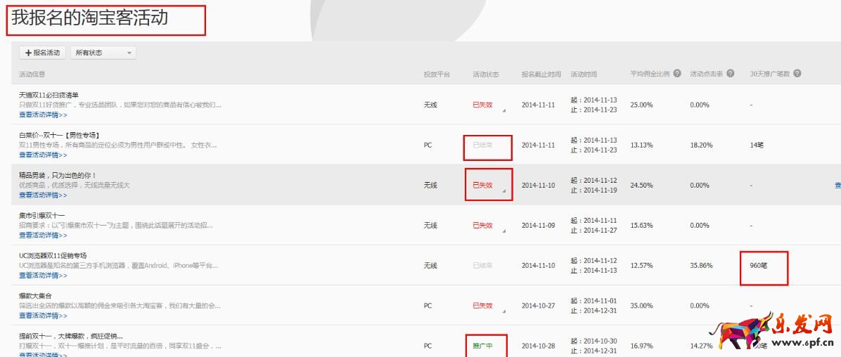 具體的頁面是這樣的。已結束的就說明活動結束了,推廣中就是正在推廣。已失效說明審核不通過。