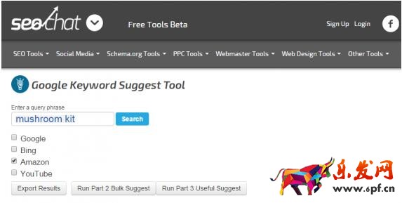 例如,上方圖片中,在SEO Chat工具輸入“mushroom kit”后,它自動在末尾添加了字母“i”,這會促使亞馬遜顯示“mushroom kit indoor”詞組,這是前10條關鍵詞建議結果中沒有得。