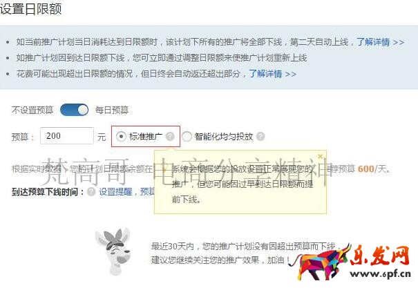 改分之一:日限額設置 智能的調(diào)成標準 20%的詞分數(shù)會上升1-2分,如果你一直用的標準推廣,那就不能提升了,本身系統(tǒng)就給你加分了。