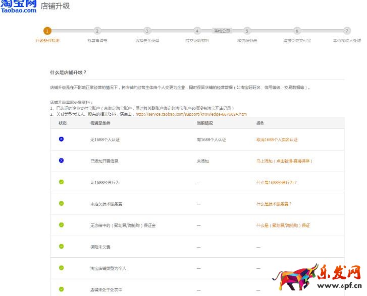然后會(huì)對(duì)你的升級(jí)條件進(jìn)行檢測(cè),如果合格就可以繼續(xù)升級(jí),反之就不行,店鋪的升級(jí)是在不影響正常經(jīng)營(yíng)的情況下,將店鋪的經(jīng)營(yíng)主體由個(gè)人變更為企業(yè),同時(shí)保留店鋪的經(jīng)營(yíng)數(shù)據(jù),像淘寶旺旺名、信用等級(jí)、交易數(shù)據(jù)、店鋪權(quán)重等等。既然要開企業(yè)店當(dāng)然不可能說(shuō)你要開就開啦,首先得是已認(rèn)證的企業(yè)支付寶賬戶未綁定淘寶賬戶,同時(shí)其相關(guān)聯(lián)賬戶綁定的淘寶賬戶必須沒有淘寶開店記錄。然后關(guān)系類型為法人、股東的相關(guān)資料,當(dāng)你打開店鋪升級(jí)的時(shí)候會(huì)有鏈接進(jìn)去。