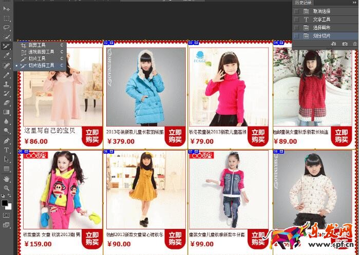 首先我們要用PS的切片工具對圖片進行切片,每個模板切片都會有所不同哦,我這里選了一張比較簡單的圖片,這樣大家比較容易上手,下面是切好的圖片。