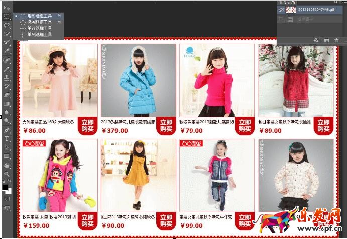 這樣我們就可以看到該寶貝圖片的位置大小,接下來我們就可以把自己店鋪的寶貝圖片制作成與模板圖片的大小一樣,這樣我們就可以把自己的寶貝圖片很吻合的放入模板中。
