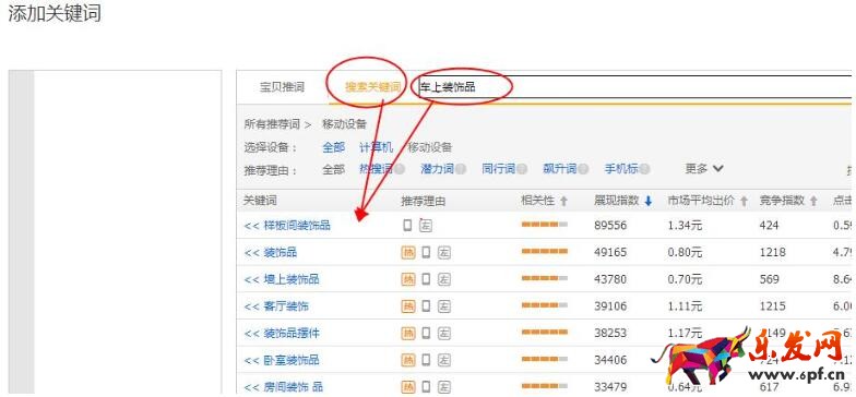 保證延伸出來的關鍵詞都能夠以這個詞來延伸,盡量找到包含“車上裝飾品”的關鍵詞,在直通車上來做。