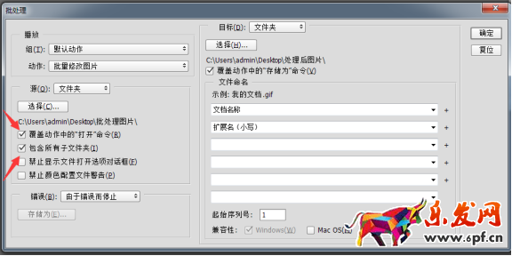 如果你需要把處理過的圖片保存在另外一個文件夾,可以在目標(biāo)這里選擇文件夾,再點擊選擇按鈕,選擇要保存的文件夾,最后點擊確定,批處理就開始了。