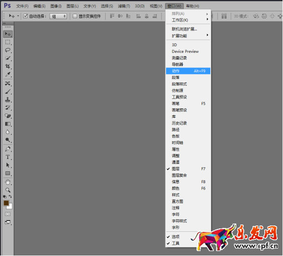 首先打開我們的PS軟件,選擇窗口菜單下的動作