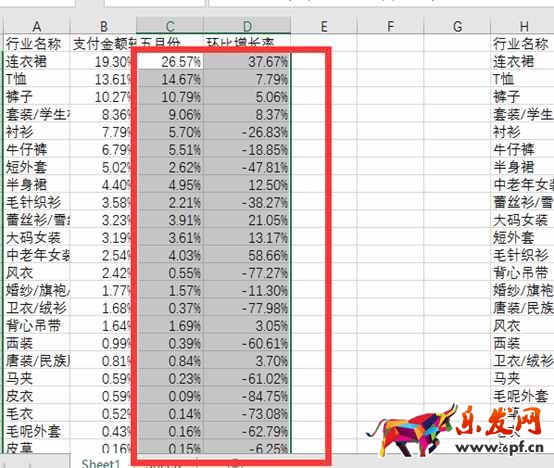 這個時候五月份的占比和環比增長率都可以出來了,我們的獲取數據步驟也完成了。
