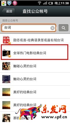 臺詞類的微信號,競爭相對較弱,可以保證排名出現在首頁,鎖定:“電影臺詞”一詞