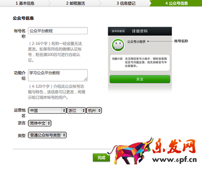 功能介紹這塊可以先隨便寫個,后期可以隨時修改,賬號類型選擇普通公眾賬號。