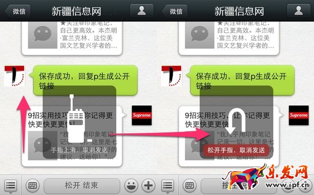 當你按住了語音,但又不想發布的時候,怎么辦?這時只需手指不要放開,向上滑動即可取消發送