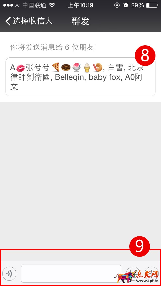 YX*Sz!v `S03.如果是首次進入群發助手,則選擇“新建群發”。選擇好要發送的對象后,再選擇好友里面可以“單個選擇”也可以“全選”