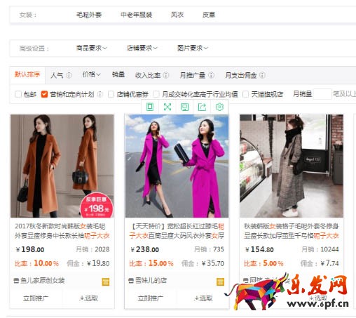 進去后可以直搜索商品名稱或者的淘寶產品的鏈接。排序方式有默認排序,人氣,價格,銷量等等,在這個頁面可以看到寶貝的價格,月銷多少,以及設置的傭金比例,在寶貝的對應下方有個立即推廣,能獲取一個推廣網址,淘客在去發這些網址到博客,網站,以及一些社交app。有成交淘客就能獲取傭金。