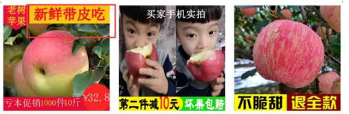 另外一方面,你也可以在首圖中,通過(guò)對(duì)比打蠟蘋果和不打蠟蘋果的不同,來(lái)讓消費(fèi)者覺得吃“打蠟蘋果”很痛苦。但是,至少目前來(lái)看,淘寶上這樣的首圖是很難看到的。