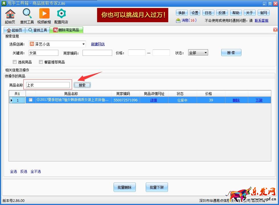 第四步:獲取完商品后,如商品數量較多,可再次通過商品名稱二次檢索,進行刪除。