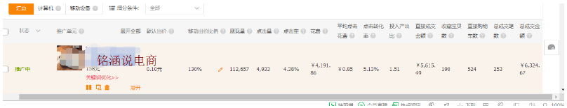 直通車數(shù)據(jù)表現(xiàn)情況: