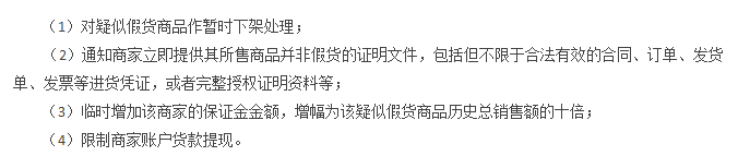 平臺在發現疑似假貨的當天(T日),將采取下列一項或者多項措施: