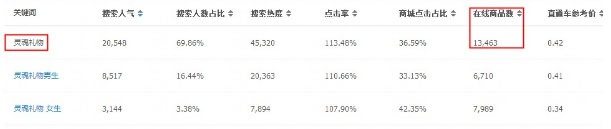 靈魂禮物一詞搜索人氣高達(dá)20548 但是競(jìng)爭(zhēng)寶貝數(shù)才13463,對(duì)于禮物類目來說,競(jìng)爭(zhēng)已經(jīng)是極低了!