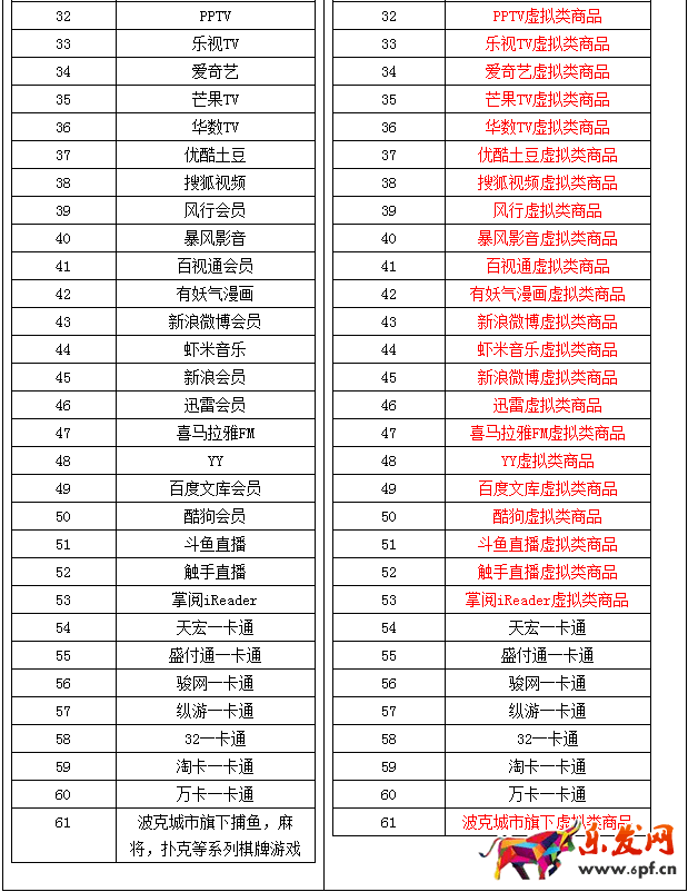 3、《淘寶網數字娛樂市場須提供官方授權的商品目錄》未有增減,僅明確細化商品種類的名稱。