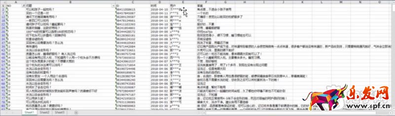 以手淘問大家為例,先收集問大家的原始數據,統計在一個表格中,如圖: