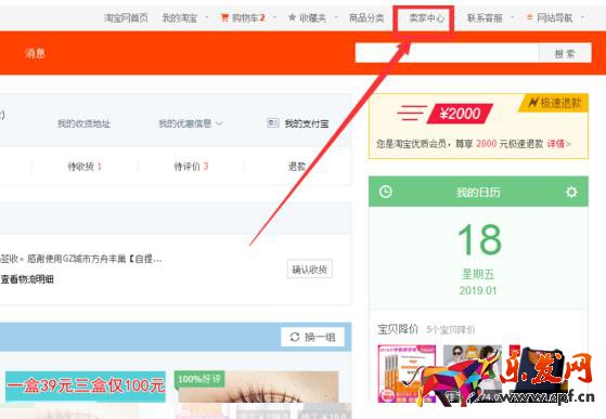 4、登錄后,點(diǎn)擊“賣家中心”選項(xiàng)