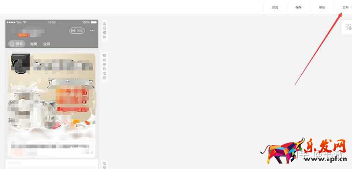 然后從左邊功能板塊中,選擇您需要的板塊拖動到右邊裝修頁面中即可。當頁面裝修完成后,點擊頁面右上角的【發布】-【立即發布】