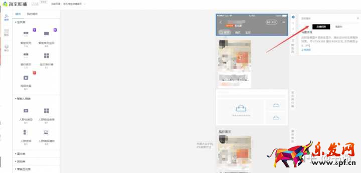 進入【電腦頁面裝修】,可以看到左邊是功能模塊,右邊是我們要裝修的頁面板塊,當我們需要哪一塊模塊時,可以直接把它從左邊功能模塊拖到頁面右邊即可。頁面裝修的板塊“店招”和“導航”是必不可少的。
