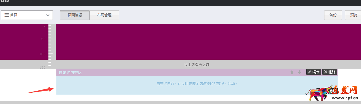 然后,到布局管理里面把淘寶的模板刪掉~~,自己添加一個自定義模塊(一個就行,把圖片全部放進去)