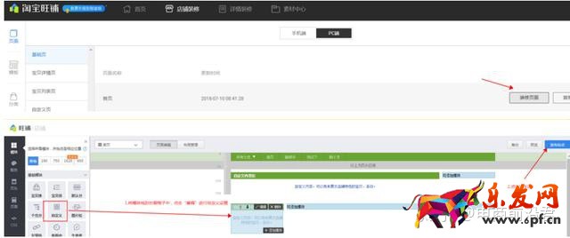 請進入【賣家中心】-【店鋪裝修】-【PC端】找到要裝修的首頁點擊“裝修頁面”,在左側“自定義區”拖到右側后點擊“編輯”進行自定義描述內容后點發布生效