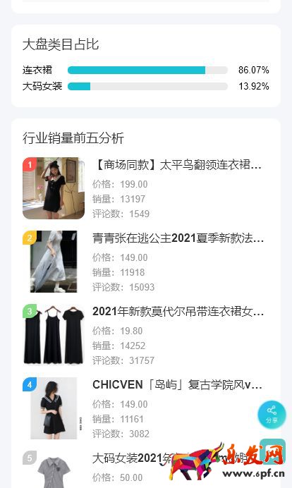 比如說這個關鍵詞下的市場,日單品總銷量、銷售額、 收藏數,以及各個價格區間的銷售額數據都可以看到,根據這些數據可以大致判斷一個市場的好壞,同時也可以去監控這個大盤,天也會自動推送報表給你,這樣你就可以清晰知道自己行業數據的漲幅