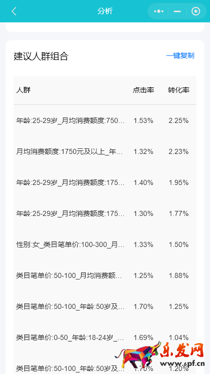 通過上圖的特征分布,結合訪客對比,我們可以很好的知道我們店鋪的人群畫像。知道了我們客戶的人群畫像,我們也就能對我們的店鋪、主圖、詳情頁進行針對性的優化。這樣對于轉化率的提高有很大幫助。