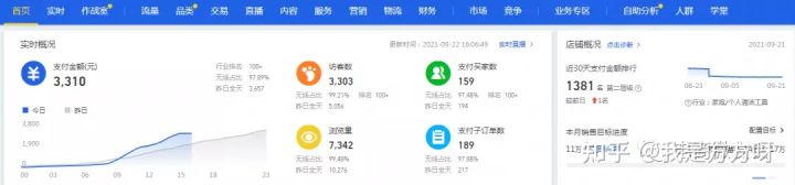 這個板塊可以看到店鋪整體的支付金額、訪客數、支付轉化率等數據與前一日以及與上周同期的對比,可以較快地發現問題所在并做出調整。也可以看自己店鋪的各項數據與同行的對比,幫助我們分析自己店鋪與同行之間的差距,找到優化方向。