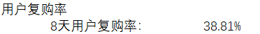 8天,用戶復購率只有38%,也就是說100個客戶只有38個購買兩次以上,復購率較低