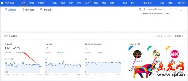 另外還可以看到訪客數(shù),同行可以看到你與同行同層平均和優(yōu)秀水平的差別。