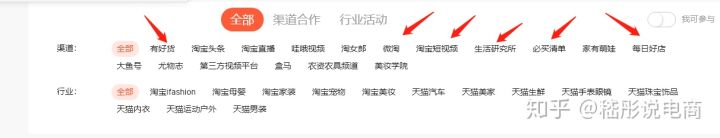 目前的淘寶市場以及整個電商市場,短視頻的流量是具有非常大的潛力的流量,包括直播,圖文,短視頻,這些都屬于個性化流量端口,他可以給店鋪帶來很多垂直領域的流量,當然也能帶來轉化,因為店鋪沒有做這方面的工作,我們在這里也不做詳細的敘述,下面是平臺端口截圖,可以詳細去了解他們的機制和作用。箭頭標注出來的就是我們可以去運作的端口。淘寶2017年開始做個性化流量端口,同時淘寶的首頁也一直對這些端口有展示,只要做好店鋪標簽,然后打開這些端口。對于店鋪提升層級的幫助不言而喻。