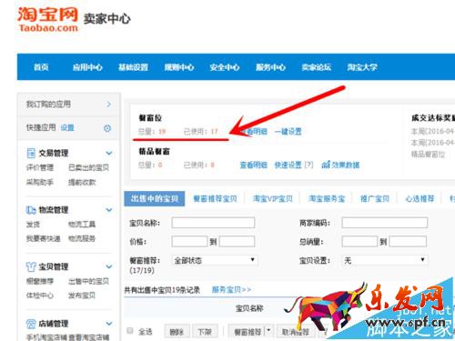 3、先查看自己有多少櫥窗位,然后看看自己已使用了多少個,這里的總量是19.也就是這里有19個櫥窗位,已經用了17個