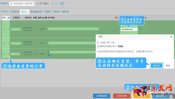 第5步:打印好的訂單--->勾選批量發(fā)貨