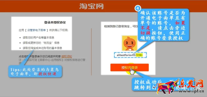 淘寶怎么打單發(fā)貨步驟:(如果淘寶電子面單已授權則可以省略前面二步操作。)