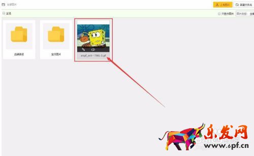 5 進(jìn)入到圖片上傳頁(yè)面,我們可以直接上傳我們需要設(shè)置的GIF圖片,完成圖片上傳后,我們回到原始的編輯位置。