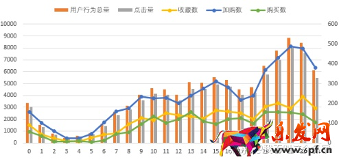 5.從用戶的消費行為習慣看,用戶在周末的時候PV、UV較高,活躍度大幅上升,且購買意愿強烈,在一天中的18點到21點是活躍高峰期,可以根據用戶的活躍時間段進行廣告投放、精準推送商家的折扣優惠或促銷活動,同時可以利用新媒體平臺進行微信、抖音等來獲取更多新用戶。